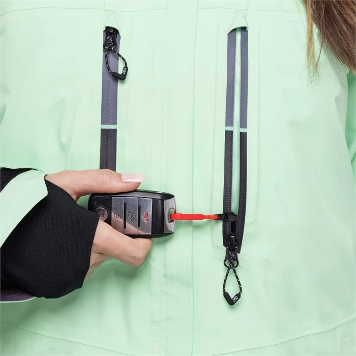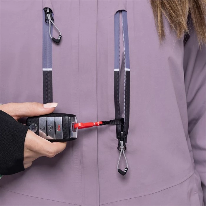 Hoodlink adds new organization to your gear. By adding a proprietary clip to the one-cinch hood adjuster and a single loop inside your hood, your jacket can now be rolled up and transformed into a neat, packable object. Slide your accessories under the bungee and you have the perfect start to any trip.